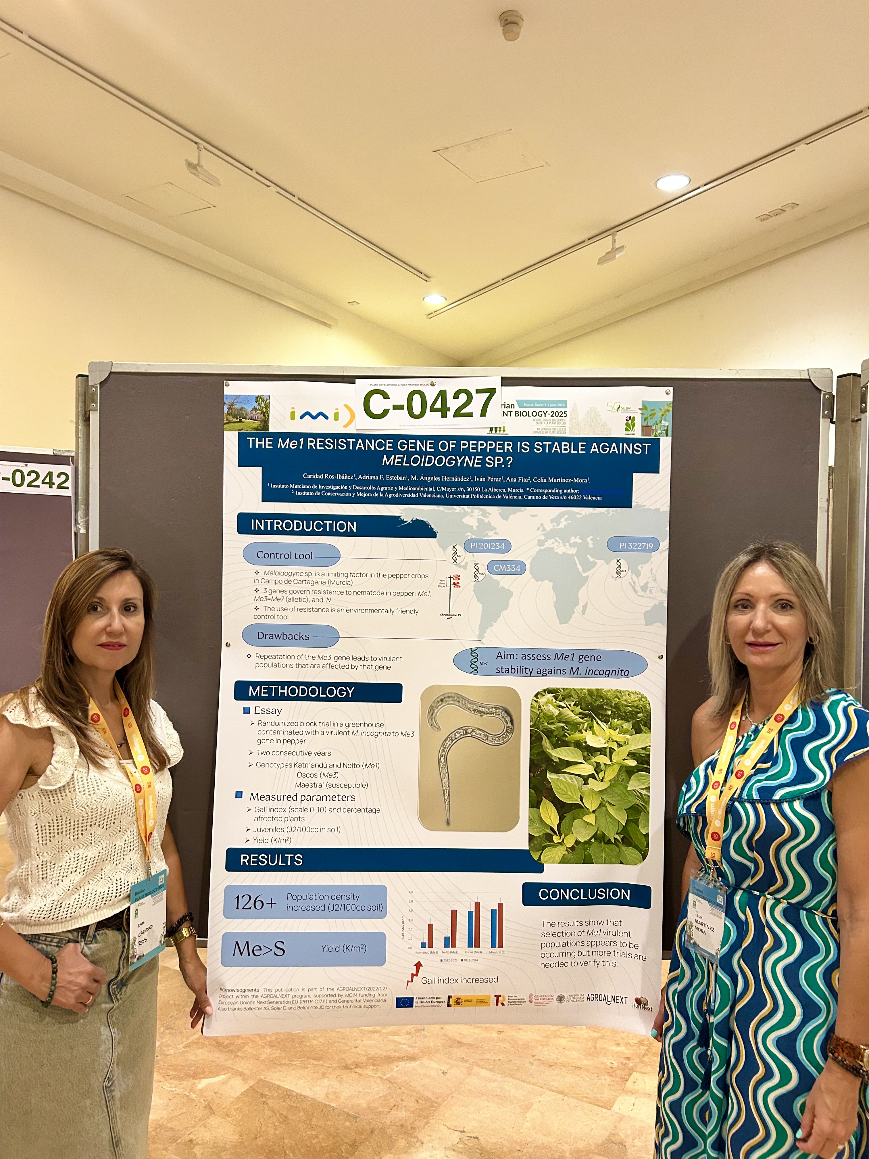 "THE Me1 RESISTANCE GENE OF PEPPER IS STABLE AGAINST MELOIDOGYNE SP." con autores Caridad Ros-Ibáñez, Adriana F. Esteban, M. Ángeles Hernández, Iván Pérez, Ana Fita y Celia Martínez Mora. Proyecto Hortnext. Colaboración: Ana María Fita, catedrática de la UPV-ETSIAMN-COMAV.