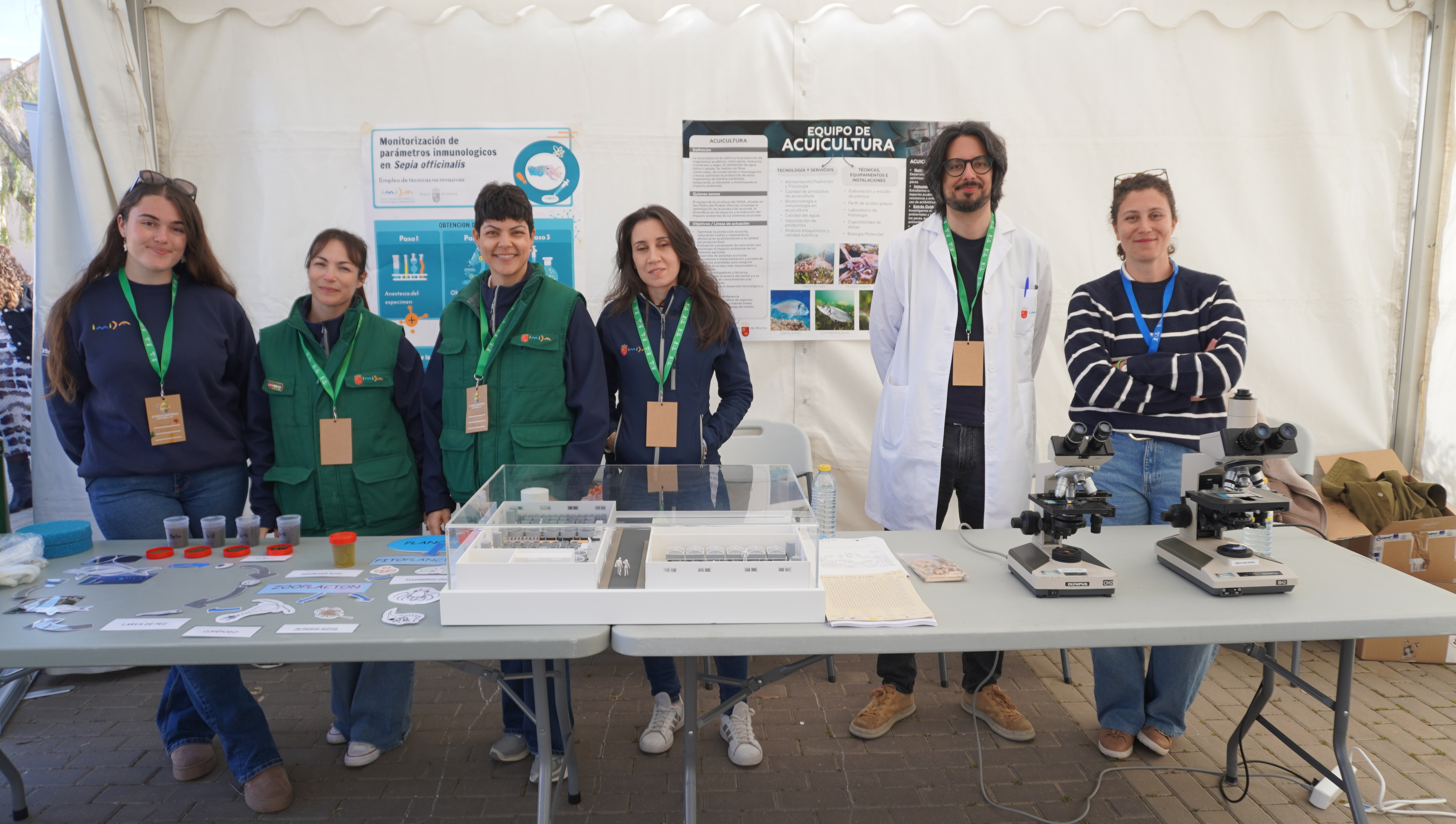 El Equipo de Acuicultura centró su actividad en poner en valor la importancia de la acuicultura en la sociedad actual, fomentando el conocimiento de las especies de mayor relevancia comercial en la Región. Además, los asistentes pudieron descubrir algunas de las líneas de trabajo que se desarrollan en el Centro de Recursos Marinos, orientadas a mejorar la eficiencia, sostenibilidad y competitividad del sector.