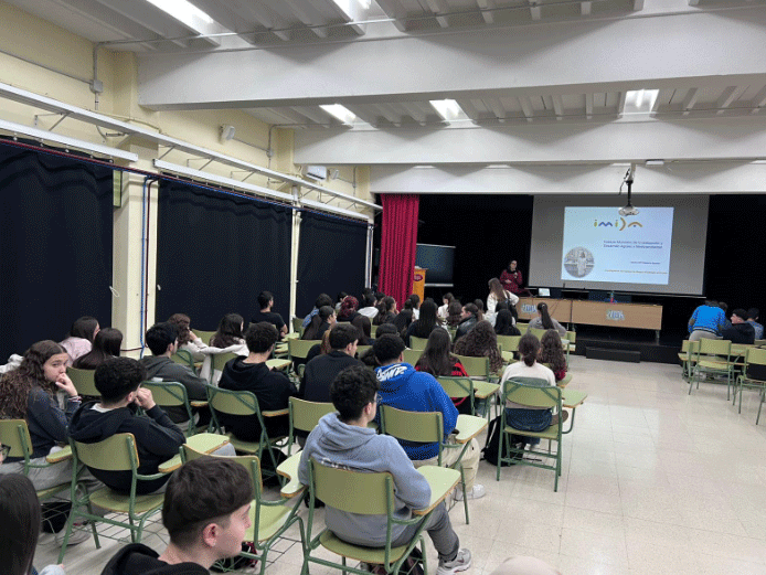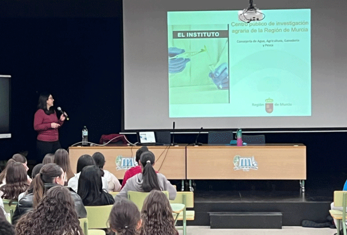 El IMIDA participó en una sesión divulgativa con estudiantes de Bachillerato del IES Felipe de Borbón, en Ceutí, con el objetivo de acercar la ciencia a las aulas y despertar vocaciones entre los más jóvenes. Durante la charla, la investigadora presentó las líneas de trabajo del IMIDA relacionadas con el uso eficiente del agua, la fisiología del estrés hídrico y térmico en cultivos y la adaptación al cambio climático, destacando la transferencia de resultados al sector agrario regional.