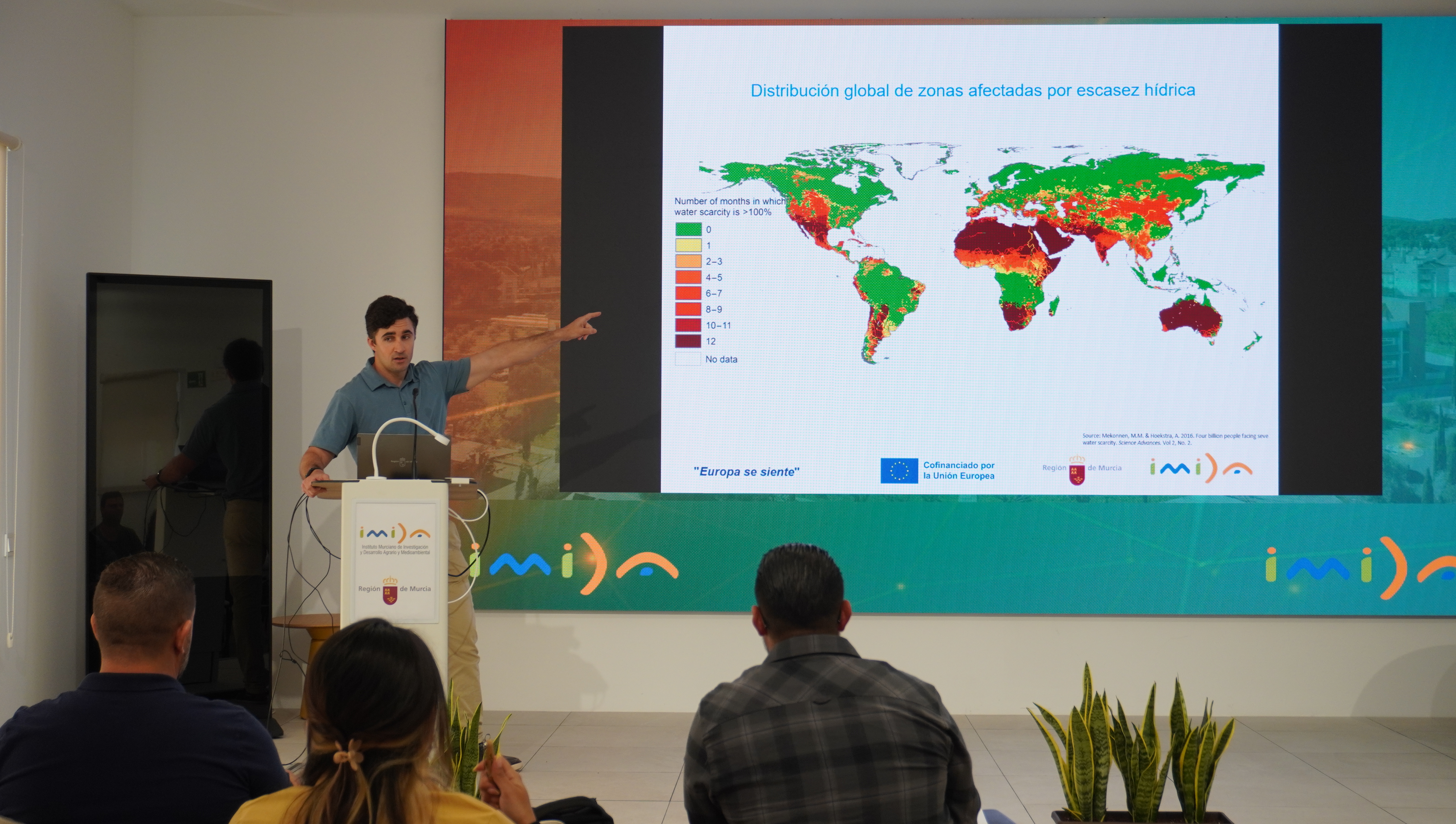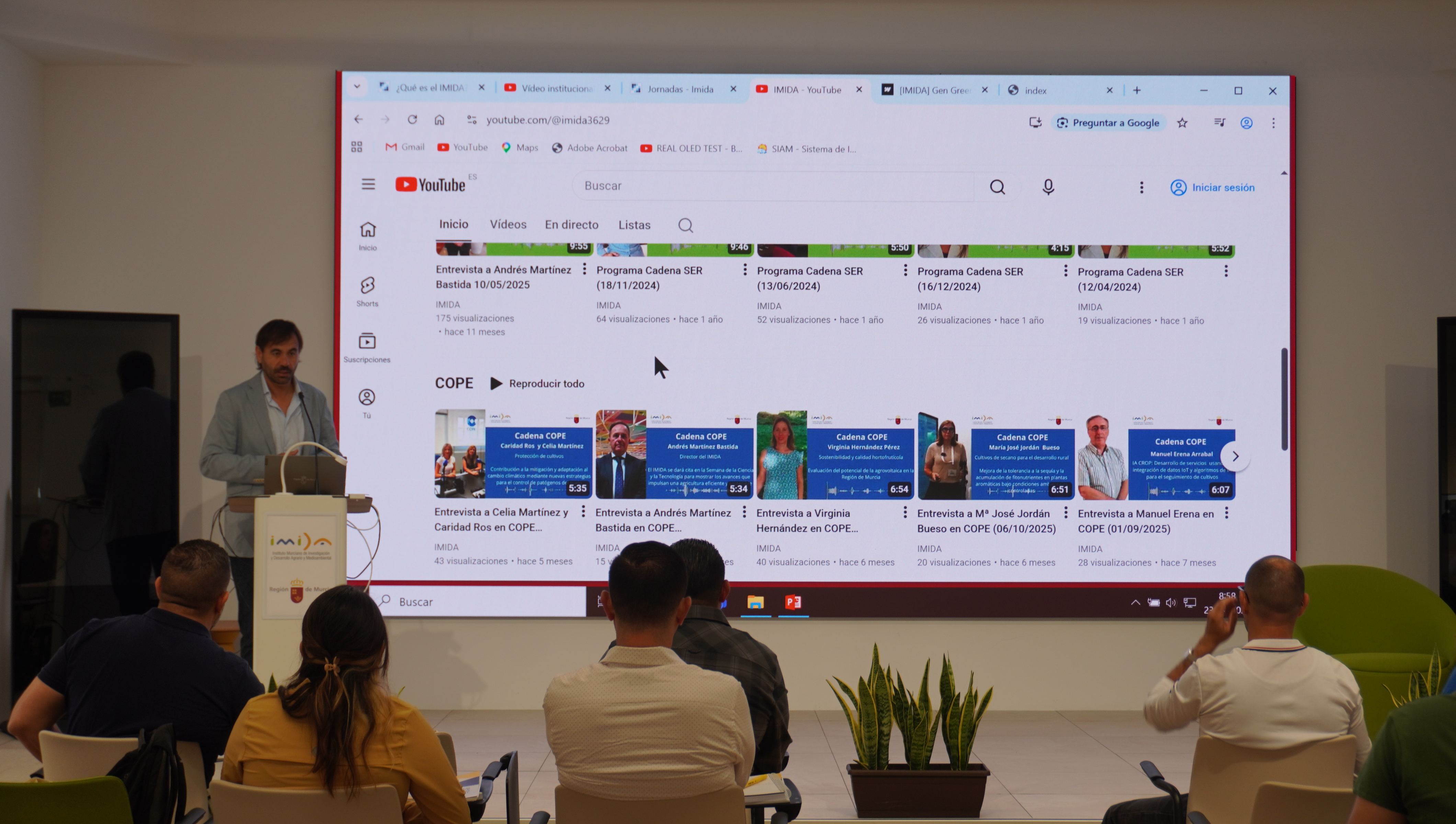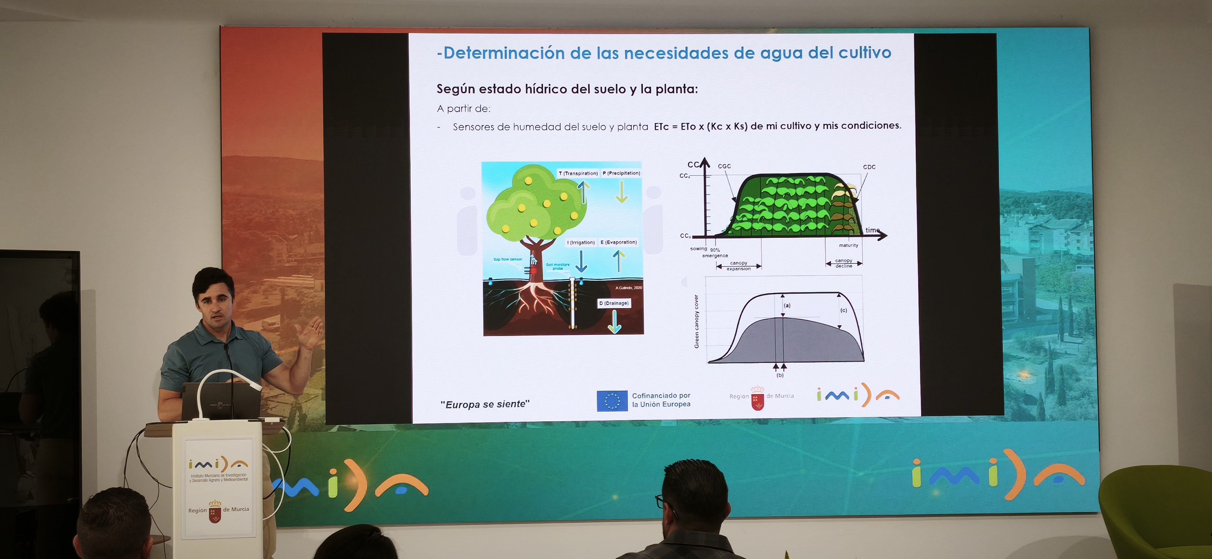 Han sido recibidos por el director del IMIDA, Andrés Martínez Bastida y posteriormente por el jefe de servicio OTRI, Antonio Aroca Martínez e investigadores de los equipos de Fruticultura y SIGyT (Alejandro Galindo y Manuel Erena), quienes les han explicado sus líneas relacionadas con la agricultura de precisión.