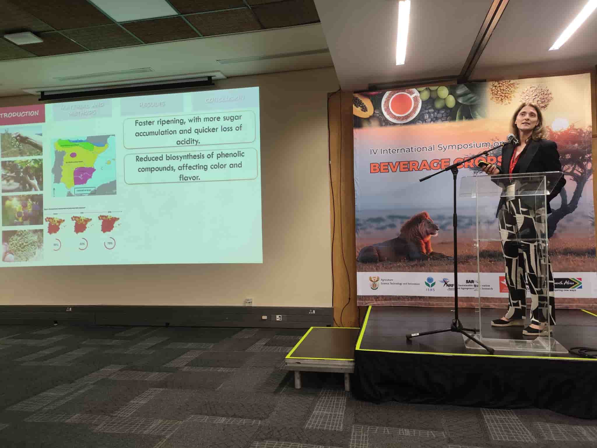 La investigadora Rocío Gil Muñoz ha participado en el IV International Symposium on Beverage Crops, celebrado en Skukuza (Sudáfrica) del 15 al 20 de marzo y organizado por la ISHS, un encuentro internacional en el que se abordaron los avances más recientes en cultivos destinados a la elaboración de bebidas.