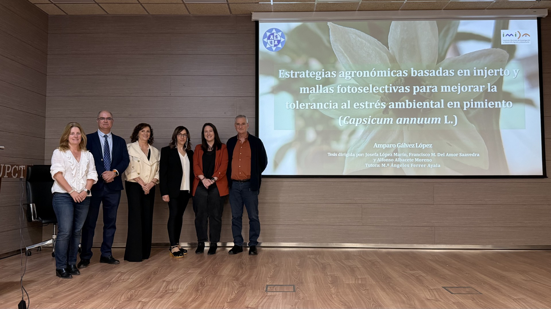 La Escuela Técnica Superior de Ingeniería Agronómica de la Universidad Politécnica de Cartagena (UPCT) ha sido el escenario del acto de defensa de la tesis doctoral de Dña. Amparo Gálvez López, investigadora del equipo de Horticultura del Instituto Murciano de Investigación y Desarrollo Agrario y Medioambiental (IMIDA), que ha sido evaluada con la mención Cum Laude.
