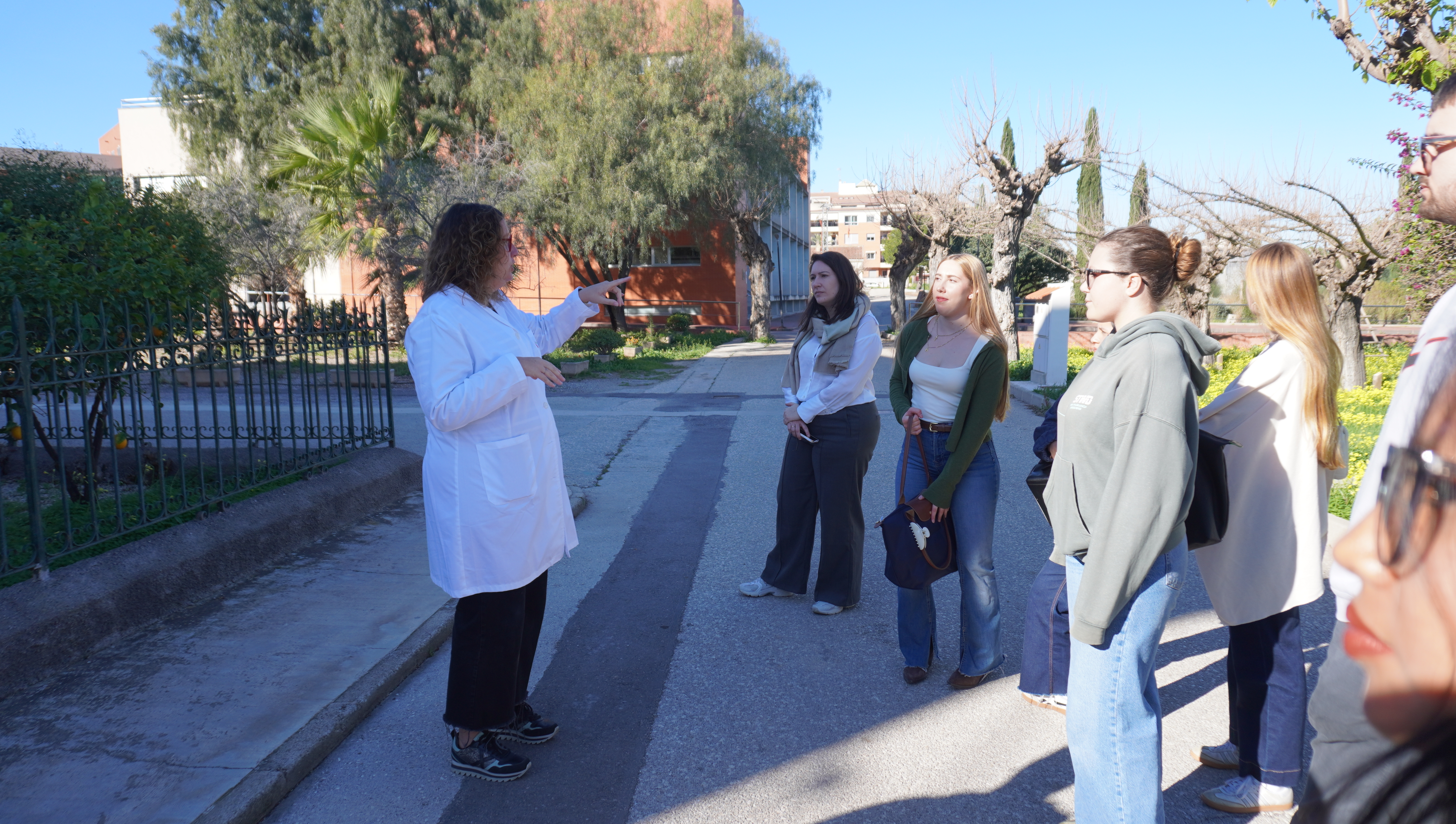 El grupo de alumnos de Nutrición y tecnología de los alimentos y de Gastronomía, acompañados por su profesora Juana Mulero, quien fue directora del IMIDA hace unos años, visitaron nuestro Centro, siendo atendidos por los técnicos e investigadores del equipo de Mejora de Cultivos Hortícolas, Mejora de Cultivos Frutales y del Grupo de Cultivo de Tejidos.